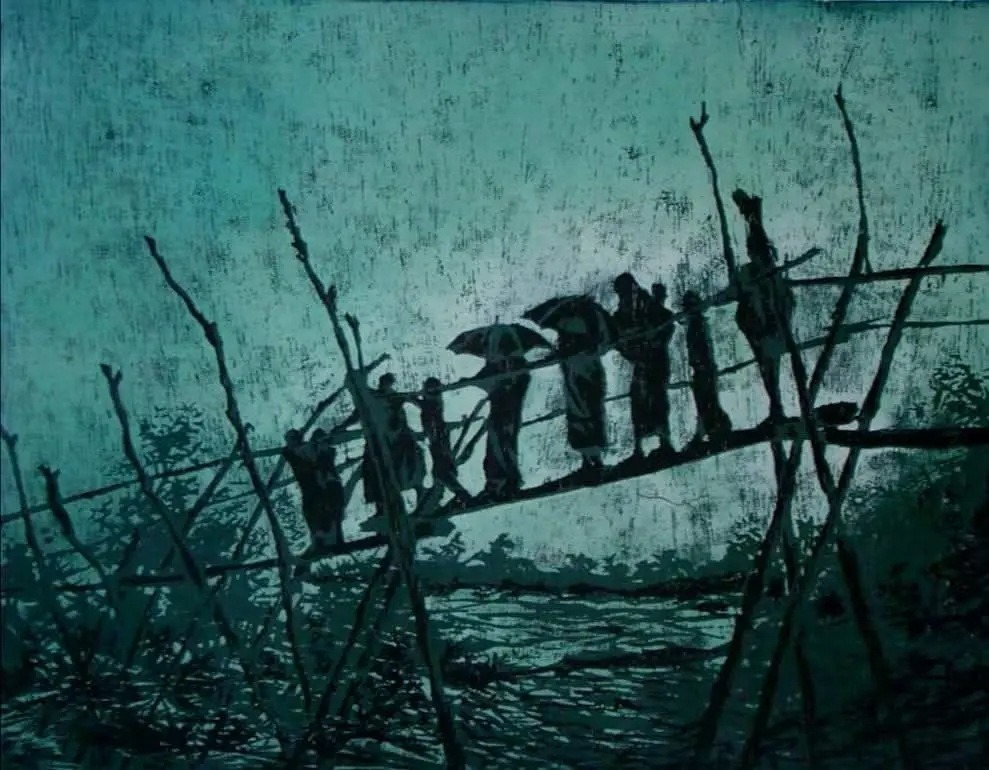 “reflex / প্রতিফলিত আলো” এই রূপান্তরেরই একটি পরিণত ধাপ হিসেবে পাঠ করা যেতে পারে। এখানে আলো আর কেবল দৃশ্য নির্মাণের উপাদান নয়; বরং এটি একটি সক্রিয় উপাদান, যা পৃষ্ঠতলে প্রতিফলিত হয়ে সময়, স্মৃতি এবং উপলব্ধির ভঙ্গুর কাঠামোকে উন্মোচন করে। প্রতিটি কাজ এক ধরনের অপটিক্যাল ঘটনাবলির মতো আচরণ করে—যেখানে আলো নিজেকে প্রকাশ করার সঙ্গে সঙ্গে নিজেই ভেঙে যায়, পুনর্গঠিত হয়, এবং নতুন অর্থ তৈরি করে। প্রদর্শনীটি শেষ হয়েছে শিল্পীর শিক্ষনবিশ কালের একটি সর্বজন নন্দিত শিল্পকর্ম ‘সাঁকো’র মাধ্যমে।